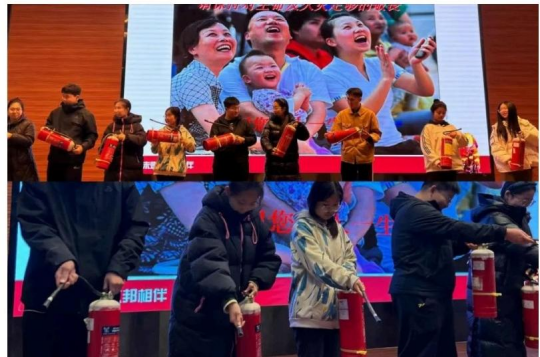 首先,尚莹轩代表公司对彭春龙老师表示热烈的欢迎,并希望同学们珍惜培训机 会,学习消防知识,提高安全意识,增强应急能力。随后,彭春龙老师结合实际案 例,配合发人深省的视频,生动具体地向同学们普及了火灾预防、救火方法以及火灾