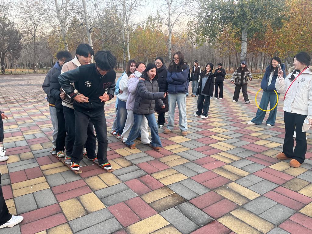 课程第一环节,学员们手拉手围成圈,在不松手的情况下快速传递圆环。大家不断调整方法、互相配合,真切体会到“团结就是力量”。第二环节,学员们利用有限的地垫搭建“小船”,在不落地的前提下一起向前移动。面对“船体缩小”“跨越障碍”等挑战,大家迅速分工、互相帮助,在一次次的尝试中,感受团队的力量。第三环节“群龙取水”,同学们在规定距离内协作取水。有人主动承担支撑任务,有人负责传递配合,在参与中增强获得感。