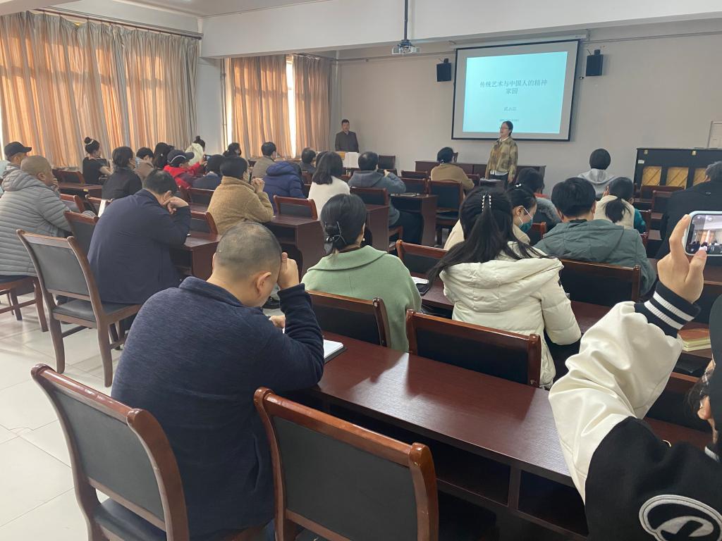 2021年11月15日下午,太阳成集团tyc234cc主页邀请公司期刊编辑部主任武占江教授为师生做题为“传统艺术与中国人的精神家园”的专题讲座,讲座由太阳成集团tyc234cc主页经理聂书法主持,太阳成集团tyc234cc主页全体教师和部分研究生参会。